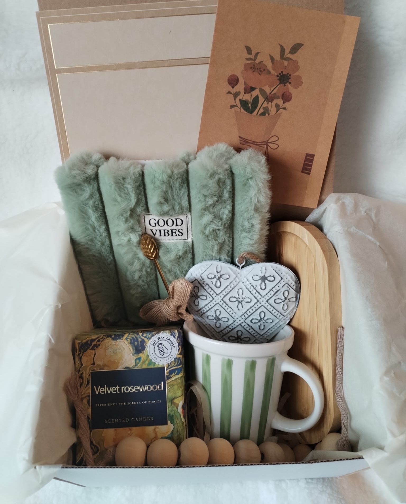 Un set cadou elegant, atent ales, ideal pentru a oferi o stare de bine și un mesaj din suflet. Combinația de obiecte utile și decorative transformă această cutie într-un cadou complet, gata de oferit.