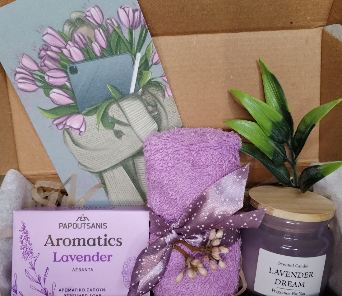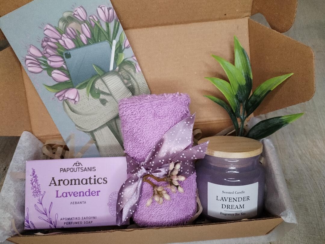 • Lumânare parfumată „Lavender Dream” – creează o atmosferă relaxantă și primitoare.