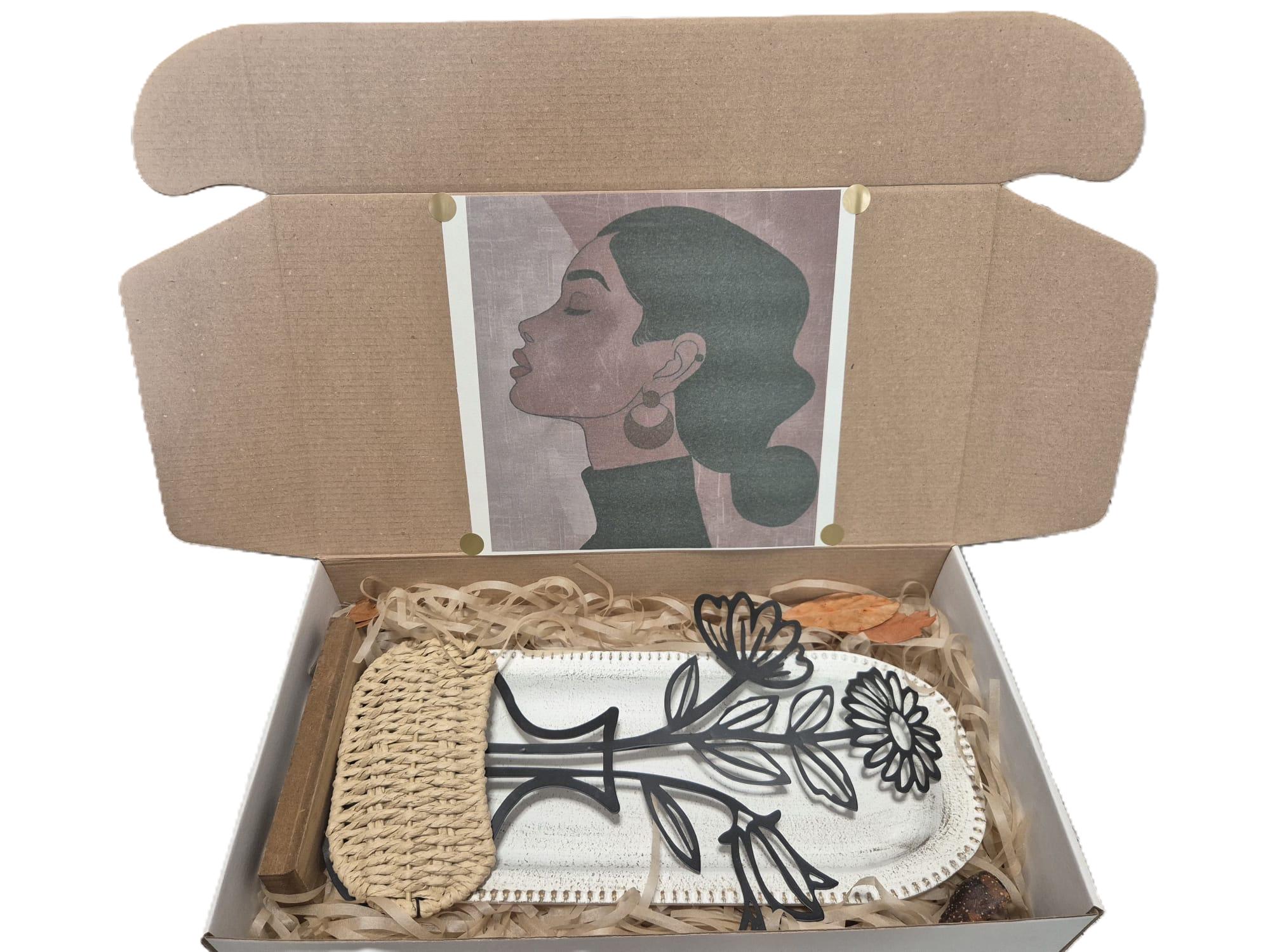 Setul este livrat într-o cutie, așezat pe un pat de lână de lemn natur, ceea ce îi conferă o notă artizanală autentică și îl face un cadou perfect, gata de oferit, fără a necesita împachetare suplimentară.